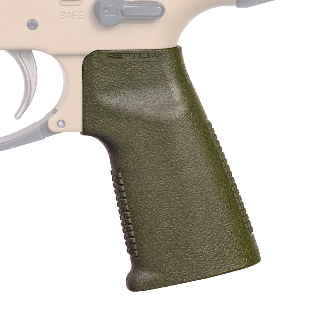 Grip CQG-NB (No-Beavertail) od značky Reptilia má stejnou geometrii, kterou uživatelé již roky oceňují u rukojeti CQG, a je speciálně navržena pro zlepšení ergonomie a výkonu kompaktních pušek s krátkou hlavní AR15, PCC a PDW , s jediným rozdílem, že byl odstraněn „bobří ocas“ v oblasti palce, aby se pocitově přiblížila gripu A2, který někteří uživatelé preferují.
