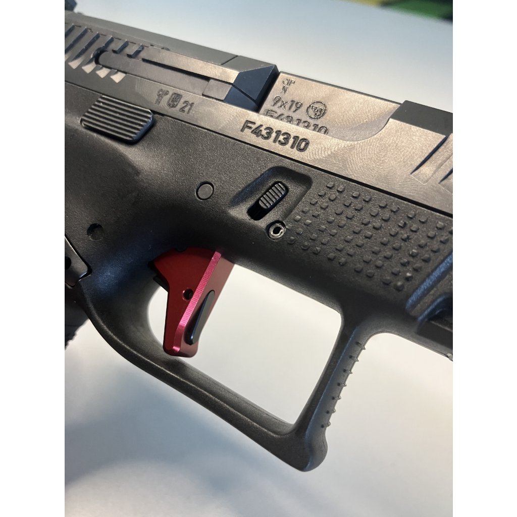 Spoušť Ascalon Arms Ergon pro CZ P-10. Vyrobena v České republice CNC obráběním z letecké slitiny 7075. Povrchová úprava elox.