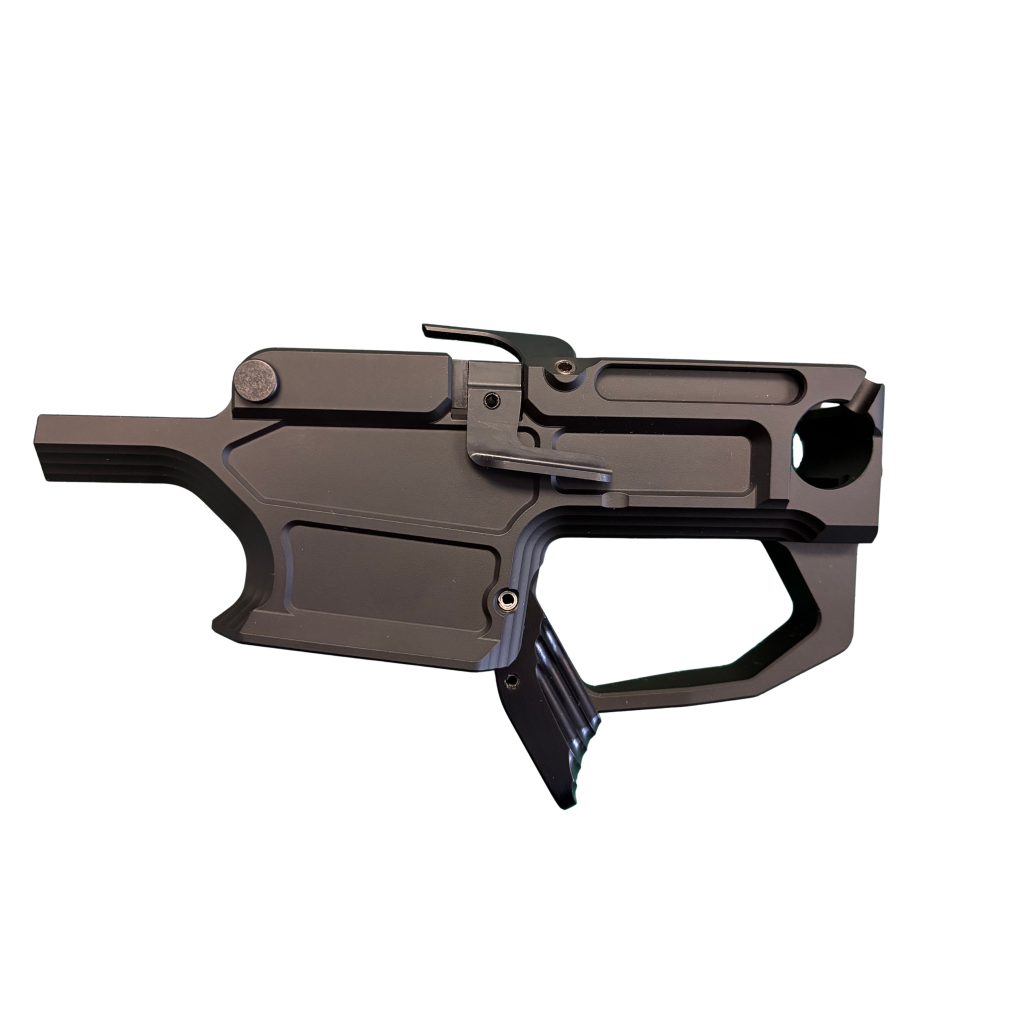 Kovové pouzdro spouštědla obráběné z letecké slitiny 7075-T6. Kromě vyšší tuhosti a menších vůlí má pouzdro ještě zvětšený náběh zásobníkové šachty, takže navaděč už není potřeba. Zachovali jsme kompatibilitu s veškerými továrními díly i běžně dostupnými zásobníky.