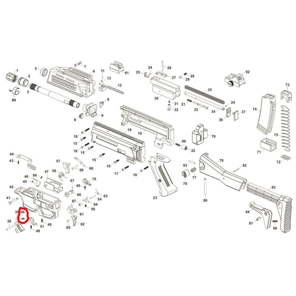 Díl č. 40 z obrázku rozpadu modelu zbraně.