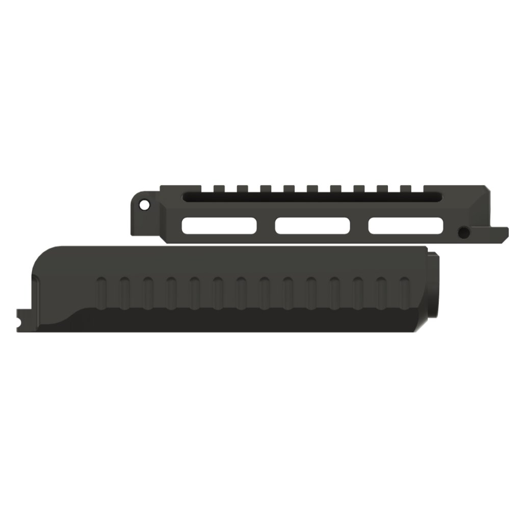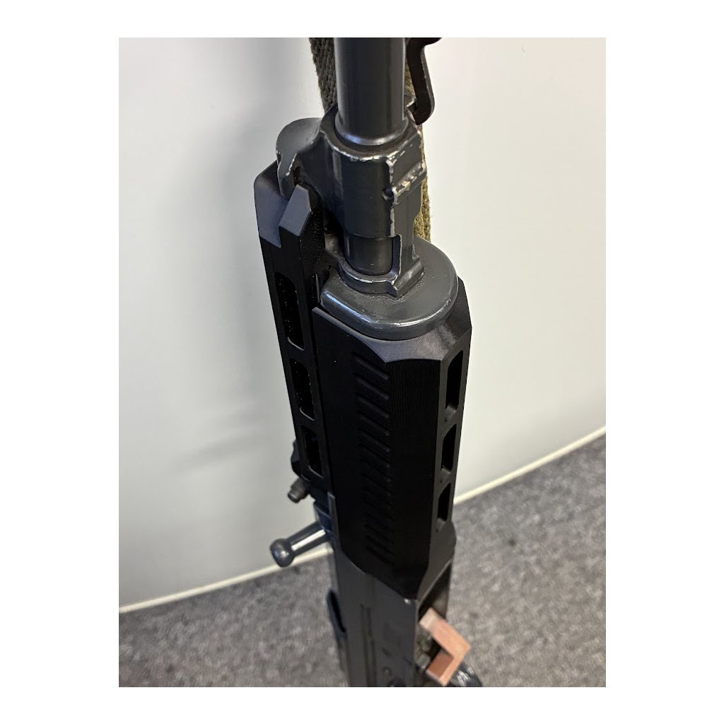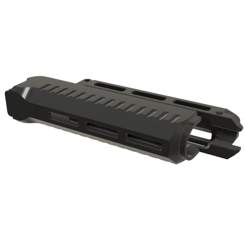 CNC předpažbí z hliníkové slitiny 7075 s tvrdým eloxem určené pro pušky Vz. 58 o standardní délce hlavně 390 mm.